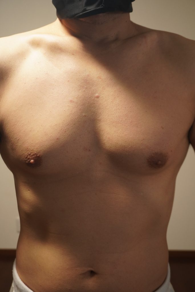 太い胸毛は、触るとまだチクチク・引っかかる感じがある。 日を空ければ、毛が生えているのも普通に確認できる。